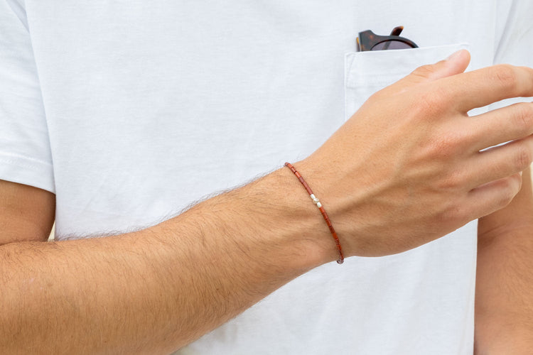 Explorez notre collection de bracelets en perles pour homme, confectionnés à la main à partir de pierres naturelles soigneusement sélectionnées.
